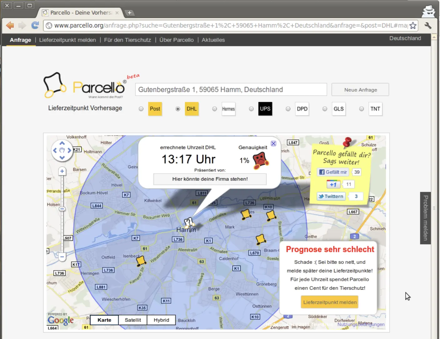 Heute besinnen wir uns wieder ganz auf die ursprüngliche Idee: Die Frage "Wann kommt mein Paket?" mithilfe von unseren Nutzern und KI so gut wie nur möglich zu beantworten.